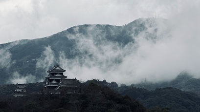 Diese kleine örtliche Burg ist ziemlich fotogen. Hier trafen wir im November auch auf den Morgennebel, den wir in Ôno gebraucht hätten. Wer über das nötige „Kleingeld“ verfügt, kann hier sogar übernachten. Ôzu-jô dürfte die einzige japanische Burg sein, wo dies möglich ist. Für die 7000+ Euro, die uns z. B. diese Übernachtung dann gekostet hätte, erfährt man aber auch die vollständige Behandlung eines Daimyô, was das entsprechende Cosplay mit jeder Menge Samurai-Gefolgsleuten im vollen Ornat und den dazugehörigen Requisiten für alle Beteiligten einhaltet. Selbstverständlich ist man dann auch der einzige Gast an diesem Tag. Das relativiert den hohen Preis dann auch wieder etwas, insbesondere wenn man bedenkt, dass die besten Zimmer in Tôkyôs exklusivsten Luxushotels annähernd doppelt so teuer sind.